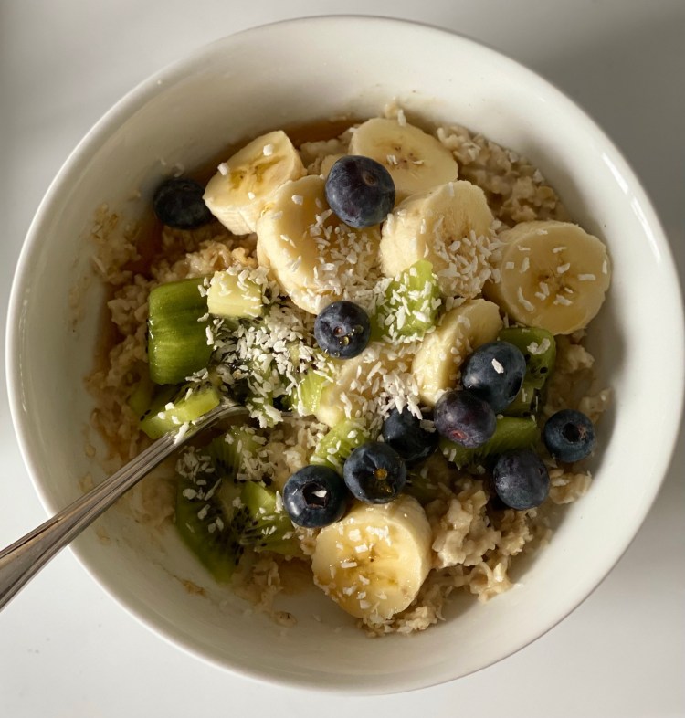 - Smoothie bowl: Blend together a refreshing mix of frozen bananas, strawberries, and blueberries with a splash of almond milk, creating a luscious smoothie bowl. Top it with sliced kiwi, shredded coconut, and a handful of granola for an energizing morning treat.